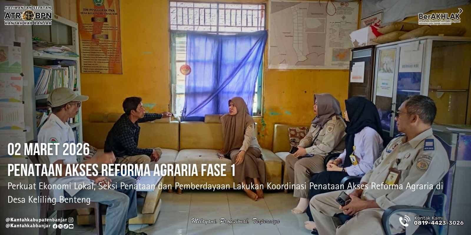 Baiman News, Martapura – Dalam upaya mendorong kesejahteraan masyarakat melalui pemanfaatan lahan yang optimal, Seksi Penataan dan Pemberdayaan Kantor Pertanahan telah melaksanakan kegiatan koordinasi untuk penentuan lokasi kegiatan Penataan Akses Reforma Agraria Fase 1 Tahun Anggaran 2026.