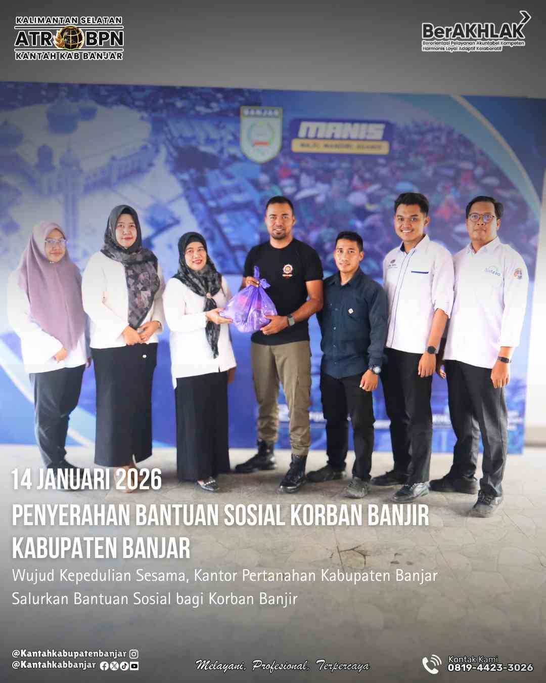 Wujud kepedulian Sesama, Kantor Pertanahan Kabupaten Banjar Salurkan Bantuan Sosial bagi Korban Banjir